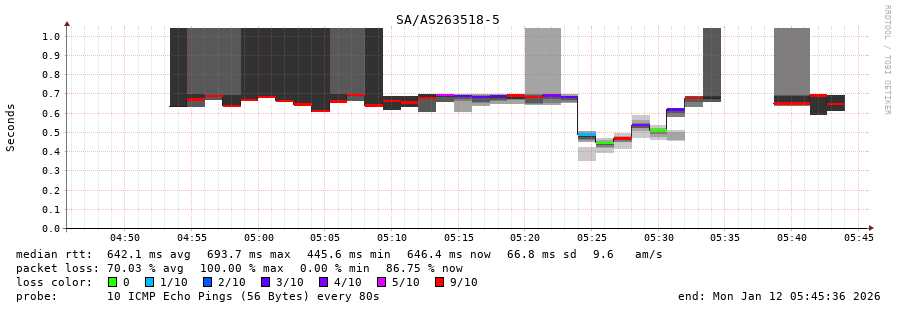 5. Median RTT 0.630 seconds