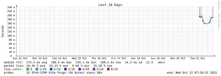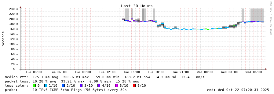 traceroute to 2001:4350:1:1::ff90 (2001:4350:1:1::ff90), 30 hops max, 80 byte packets - Generated at 2025-10-22 07:15:02