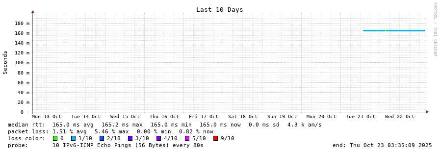 4 > 2402:1f00:ff00:100::5c8 (2402:1f00:ff00:100::5c8) [AS16276] 0.139ms 0.142ms 0.140ms