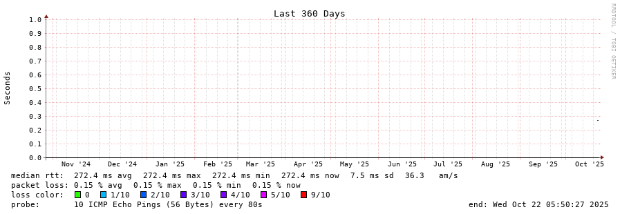 27 > be7946.ccr42.fra05.atlas.cogentco.com (154.54.72.118) [AS174] 261.637ms 274.771ms 277.468ms