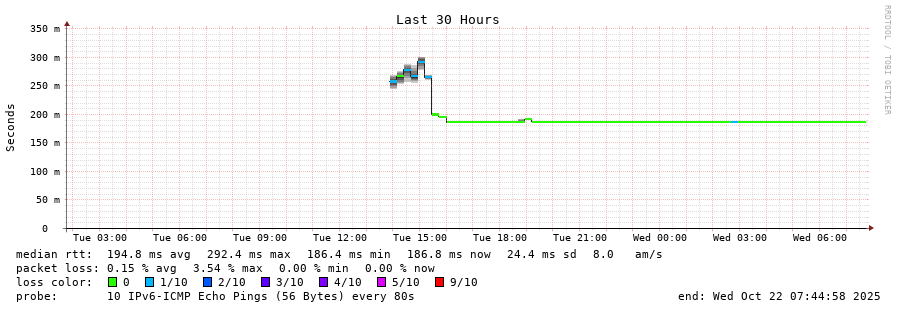 17 > 2001:b68:d::28 (2001:b68:d::28) [AS2108] 186.615ms 186.637ms 186.657ms