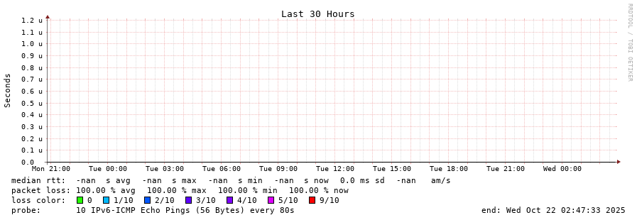traceroute to fd69:226f:3a3c::2 (fd69:226f:3a3c::2), 30 hops max, 80 byte packets - Generated at 2025-10-21 18:15:01