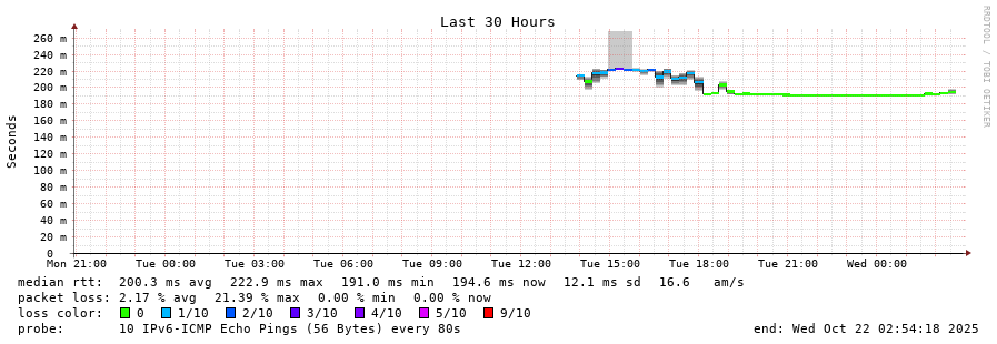 traceroute to 2001:67c:10:1102::11 (2001:67c:10:1102::11), 30 hops max, 80 byte packets - Generated at 2025-10-21 18:15:01